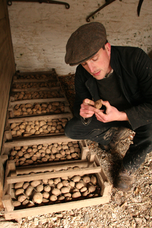 Alex and Peter fertilize the potato crop – which requires 10 tonnes of well-rotted horse dung.